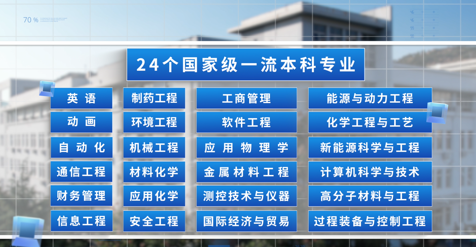 五年来,科技创新成果不断涌现。获批高性能有机光学聚合物与先进制造技术全国重点实验室,新增理工类省部级平台6个、文科省部级科研平台3个,前瞻布局建设智能化工研究院、前沿生物医药技术研究院等一批新型交叉学科研究机构。获中国工业领域最高奖项“第七届中国工业大奖”,获批省部级以上自然科学类科研奖励31项。在Nature正刊上发表论文1篇,实现了CNS顶刊论文突破。自然指数排名升至全国第42位、全球高校第93位,首次跻身全球前100强。学校理工类科研经费到账超过15亿元,成果转化到账经费达到1.6亿元,横向科研到账经费9.76亿元。