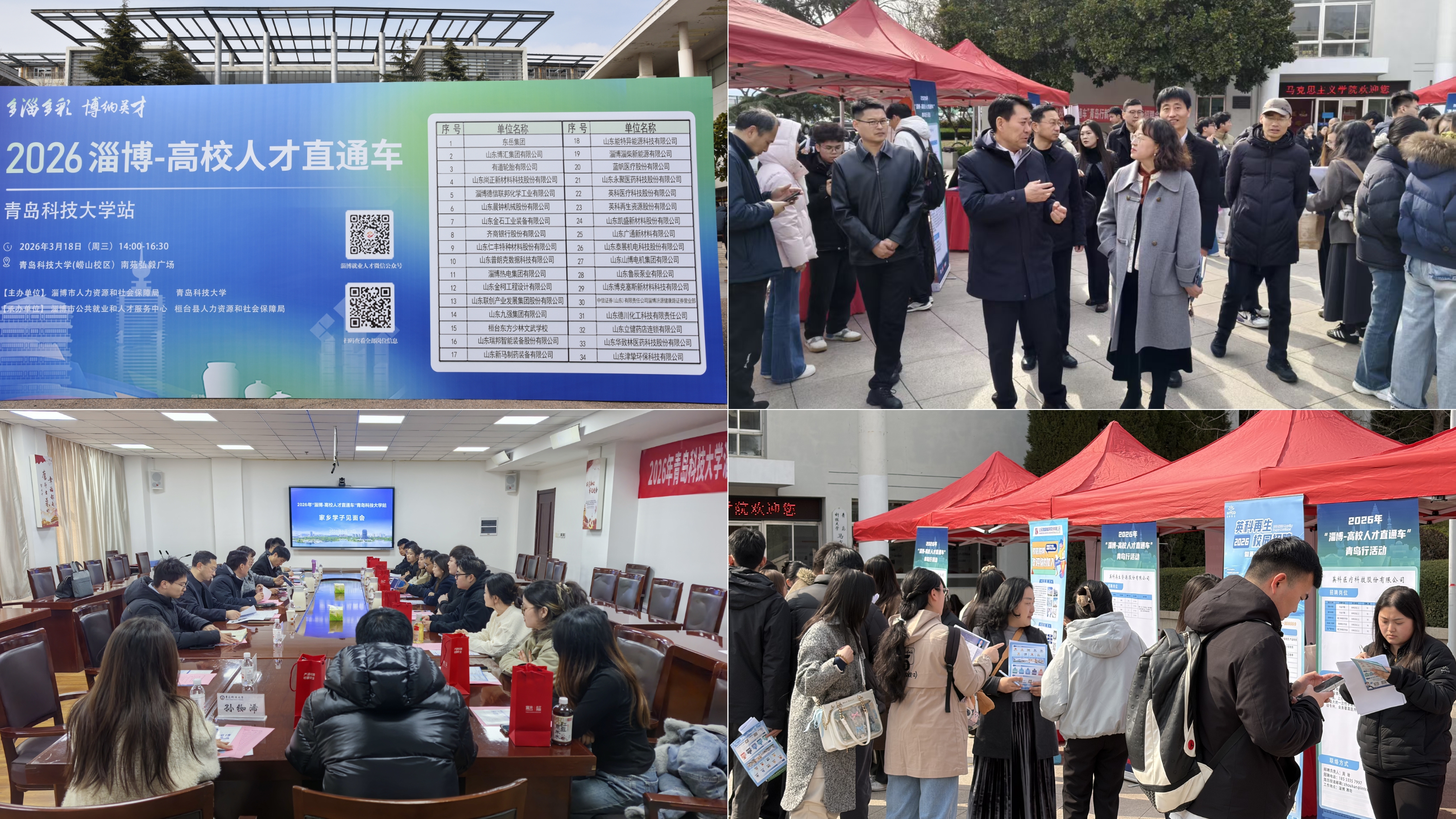 为精准服务区域经济发展,深化校地企协同育人,促进毕业生更高质量充分就业,3月18日,学校2026年首场服务区域发展之淄博专场招聘会暨“淄博-高校人才直通车”活动在崂山校区举行。