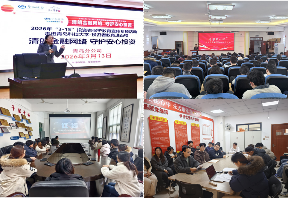 织密校园安全防线,守护平安校园。化工学院结合典型火灾事故案例开展消防安全警示教育,立足专业实际开展实验室安全专项培训,引导学生时刻绷紧安全弦。高分子科学与工程学院通过诈骗案例分析、违规电器警示、重大火灾事故警示片观看等多种形式,帮助学生掌握实操性安全防护技巧。马克思主义学院联合华福证券青岛分公司开展金融反诈教育专项活动,针对校园高发风险传授“防非”妙招,提升学生金融安全意识和风险识别能力。信息科学技术学院微电子学院以宿舍安全为“开学第一课”的实践课堂,在多次安全巡查中变“查”为“教”,现场排查隐患、督促整改的同时开展情景式安全教育,引导学生将安全意识融入日常,共同营造温馨安全的住宿环境。