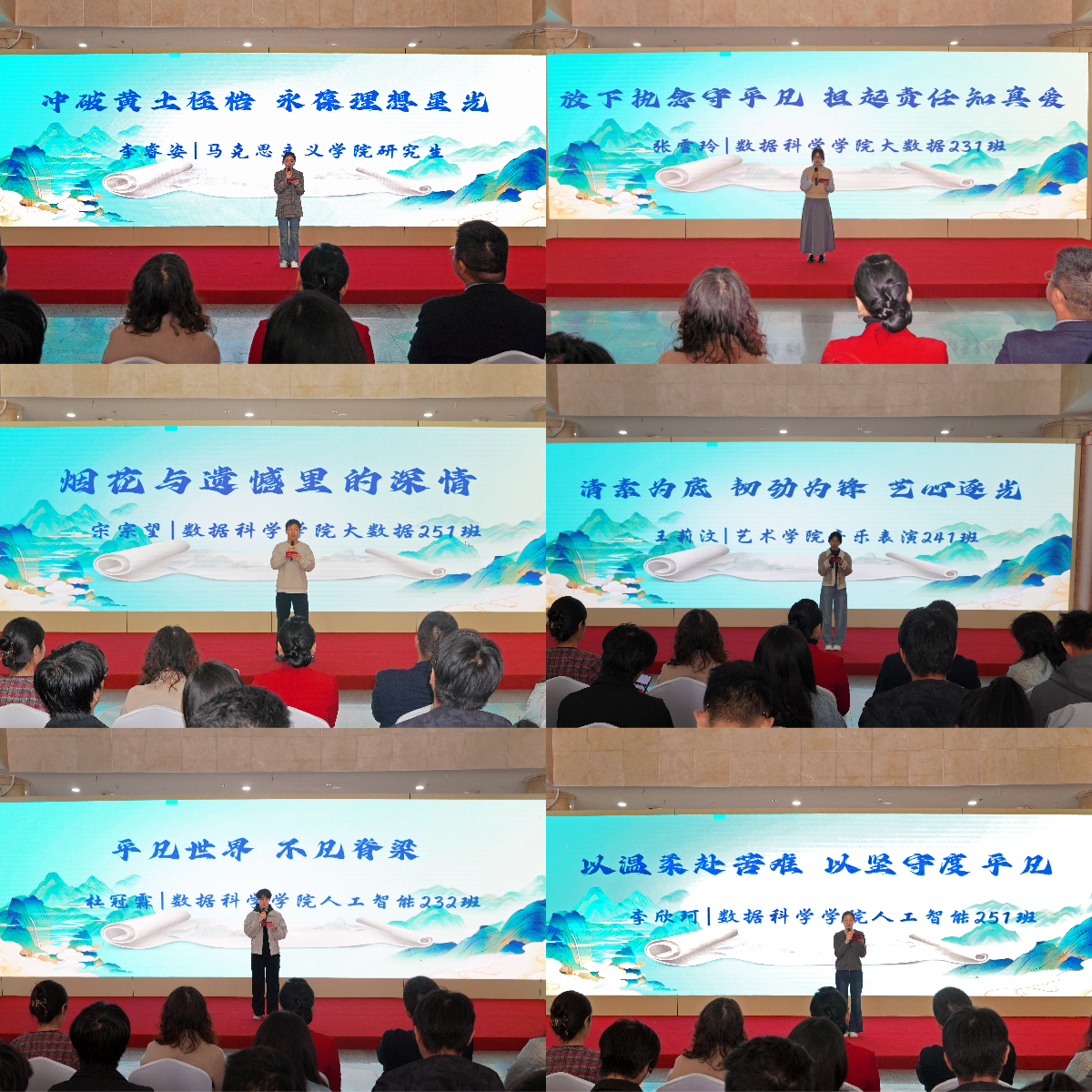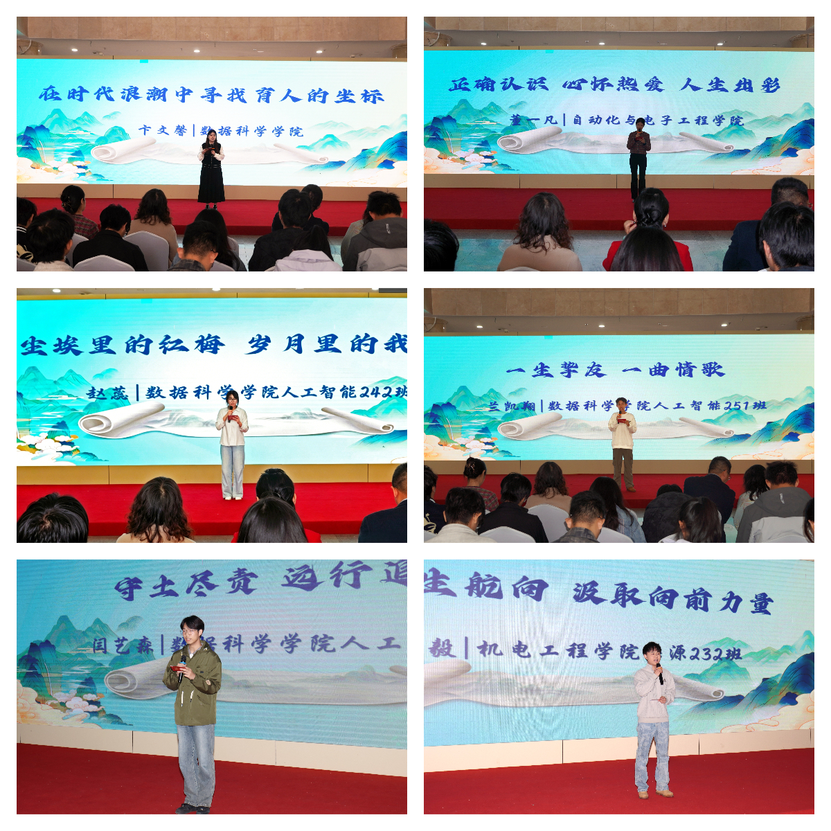 现场师生们围绕《平凡的世界》展开深度交流与思想共鸣。读书分享环节中,来自数据科学学院、自动化学院、艺术学院、机电学院等的12名师生代表,通过对书中典型人物形象的细致解读与深刻剖析,畅谈平凡生活中的坚守、苦难岁月里的成长,分享字里行间的精神力量与人文温度,引发在场师生强烈共鸣。
