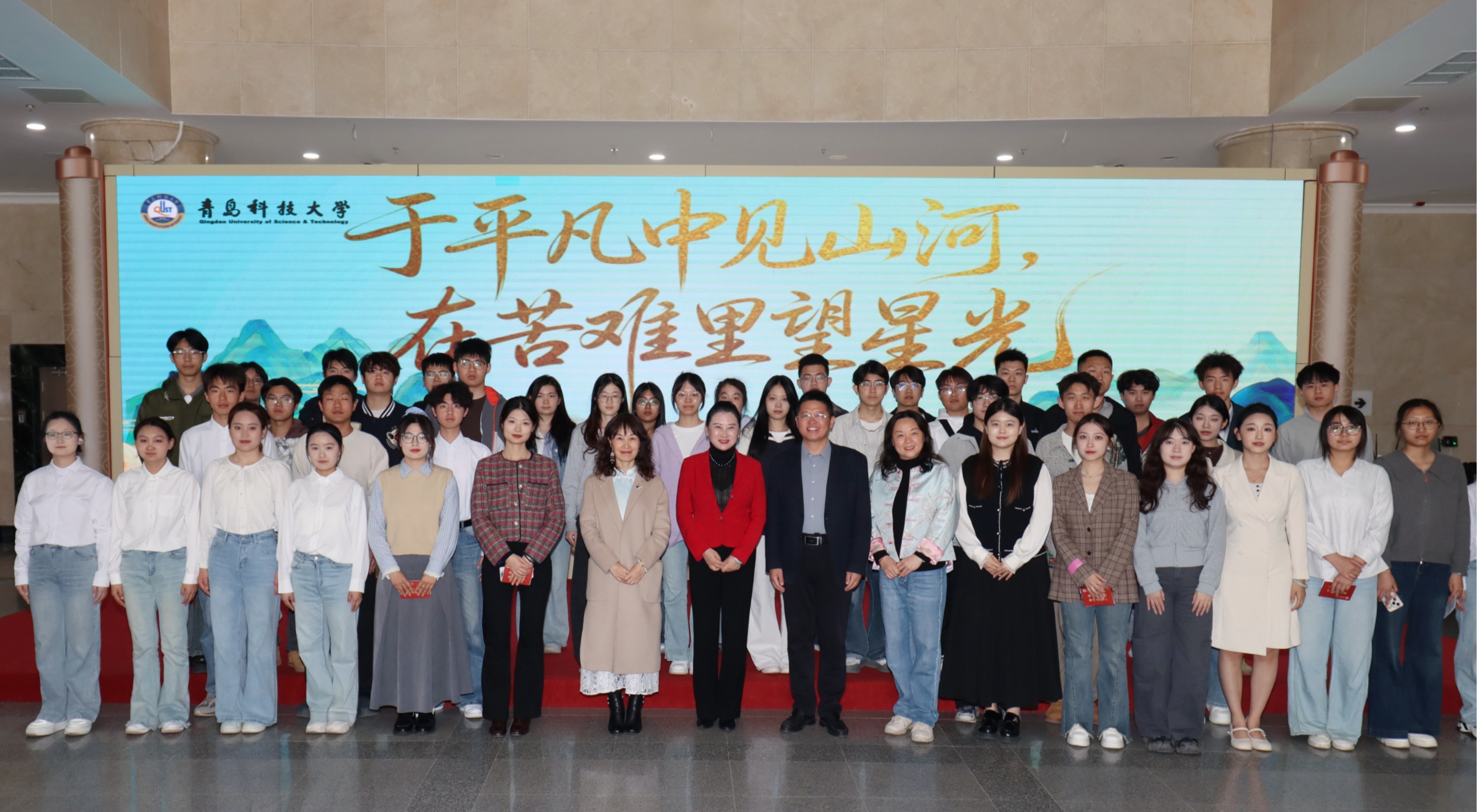 4月14日,数据科学学院联合红润初心工作室在青岛市博物馆参加“书香崂山・阅见美好”2026年崂山区全民阅读月系列活动。师生代表走进青岛市博物馆,开展“于平凡中见山河,在苦难里望星光”《平凡的世界》主题读书分享会暨数据科学学院素养课程。崂山区委宣传部副部长曲在玉出席活动。学校党委宣传部副部长、红润初心工作室贾可好主持活动。