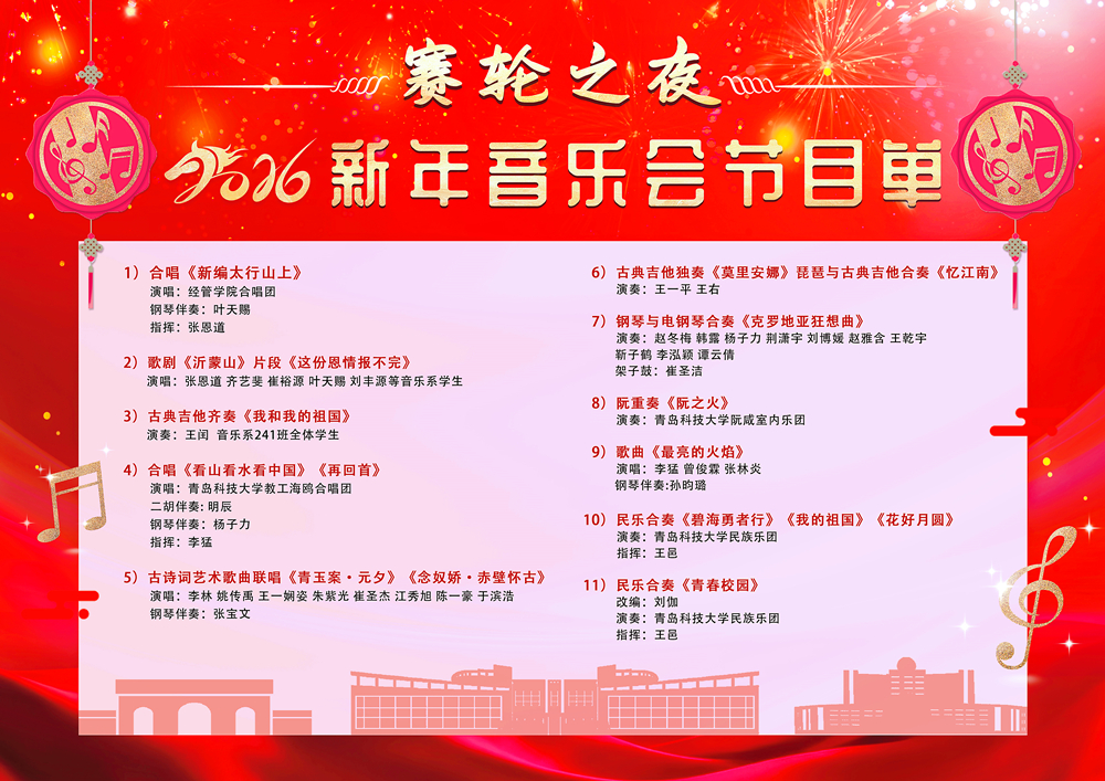 2026年新年将至,学校特举办“赛轮之夜”青岛科技大学2026 新年音乐会。本次音乐会由赛轮集团鼎力支持,众多师生与特邀嘉宾倾情表演。诚邀广大师生共赴艺术盛宴,喜迎新年到来!