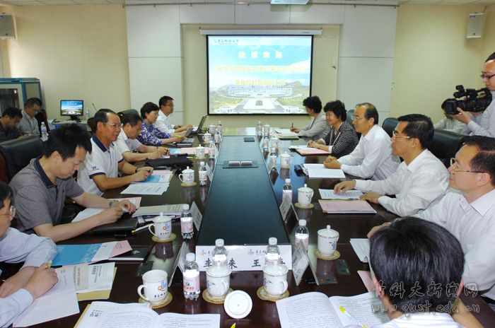23日下午,学校在图书馆楼4008会议室召开思想政治理论课建设汇报会。校党委书记高青、校长马连湘、党委副书记王瑞芳、副校长罗公利、张淑华和省委高校工委宣教处副处长李广来、省教育厅研究生处副处长王夫海出席汇报会。李小鲁介绍了此次督查工作的背景意义及相关要求。高青在致辞中对督查组一行的到来表示热烈欢迎并介绍了青岛科技大学的基本情况。王瑞芳作了题为《注重内涵发展 加强学科建设 不断提高思想政治理论课和马克思主义理论学科建设水平》的汇报,从组织管理、教学管理、课程建设、队伍建设、学科建设、科研管理和特色项目等方面汇报了学校思政课建设的总体情况。汇报会由罗公利主持。汇报会上,督查组专家与参会的各相关职能部门的负责人就相关事宜进行了沟通交流。
