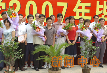 教师代表吴其烨和两校区学生代表分别发言。副校长罗公利宣读了《关于表彰2007届优秀毕业生的决定》。在颁奖仪式中,毕业生代表为获得“我最喜爱的老师”称号的老师献上鲜花。