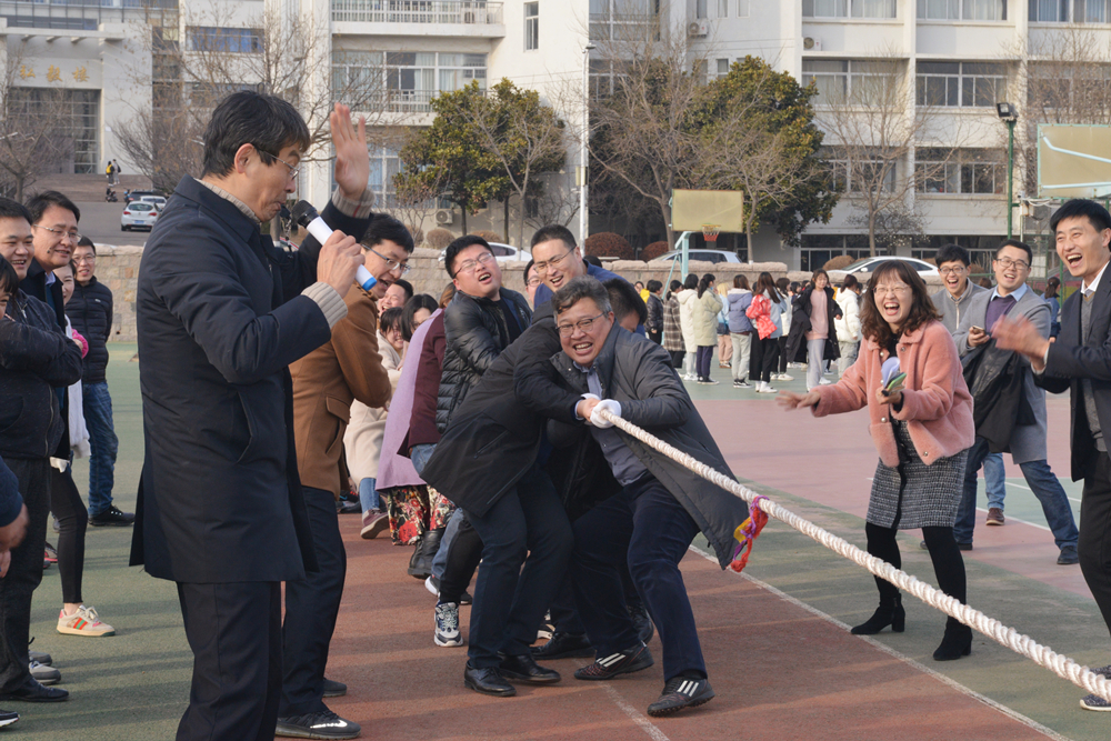 党委书记马连湘,为全校女教师送上节日祝福,并宣布拔河比赛开始。机关一各部门教师分为4个参赛队,每队由15人组成,比赛采取三局两胜制。根据各部门男女比例、年龄结构等元素混合组队进行比赛,这既有利于激发奋斗精神、提升身心素质,也有利于部门之间加深了解、增进友谊。大家在比赛中“不待扬鞭自奋蹄”,发扬“科大精神”、践行“橡胶品格”、贯彻“五有理念”,团结协作、众志成城、奋勇争先,展示出了凝心聚力、真抓实干、担当作为、攻坚突破的良好精神风貌,彰显了新年新气象、牛年牛起来的姿态。