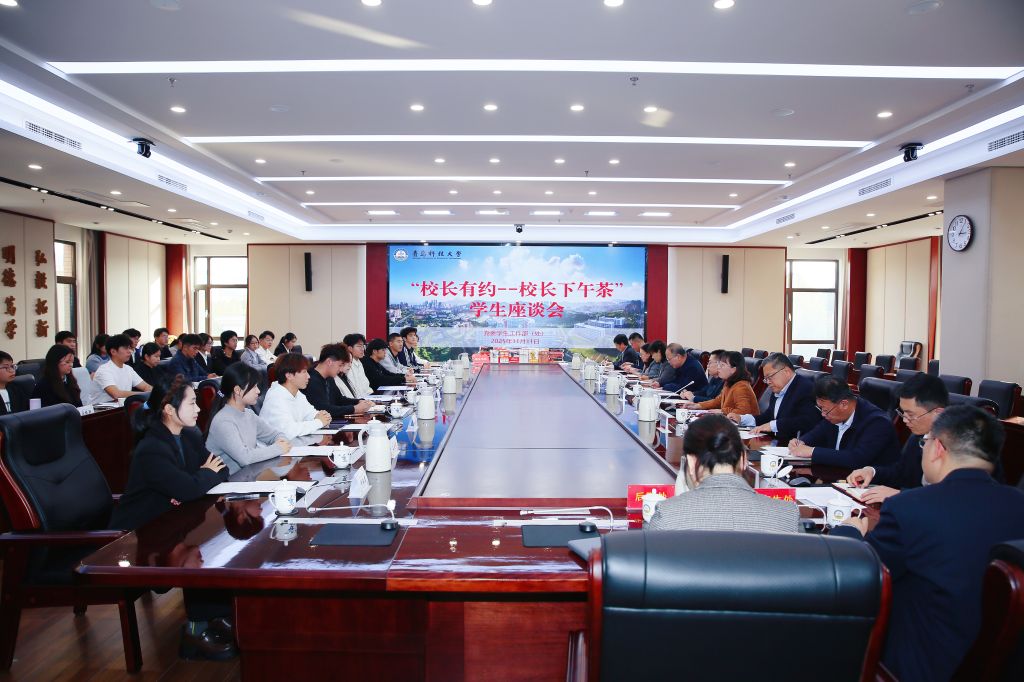 11月11日下午,学校在赛轮会议室举办“校长有约——校长下午茶”学生座谈会。党委常委、副校长丁林,党委常委、组织部部长朱敬义,党委常委、统战部部长秦姣出席会议。