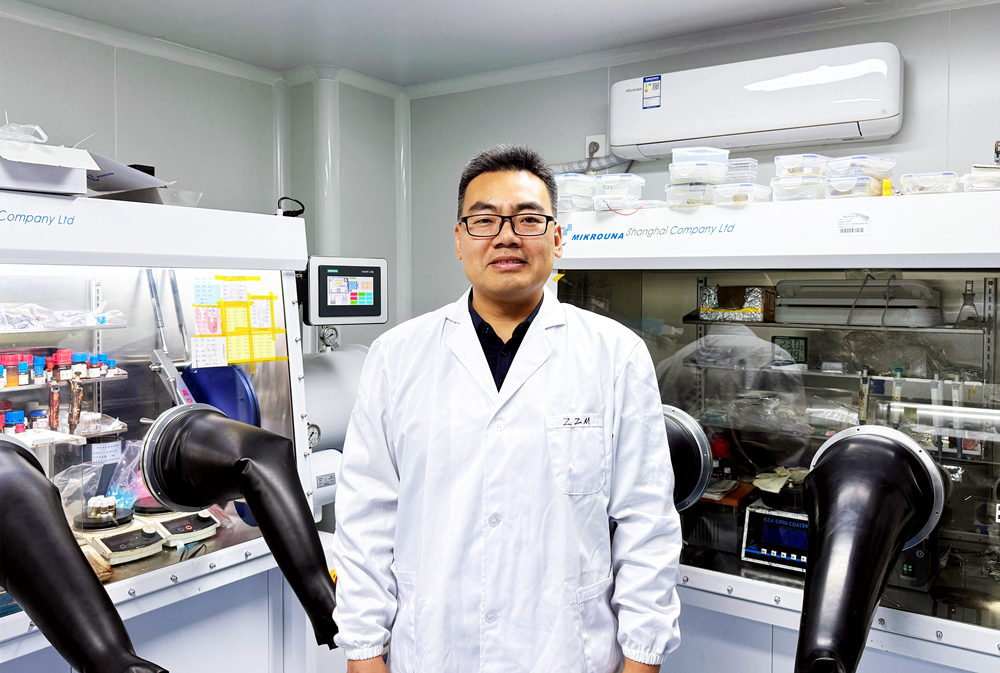 周忠敏教授在实验室指导研究生(右二为周忠敏)