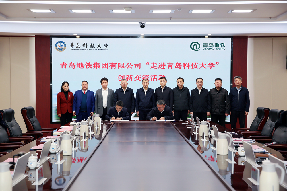12月5日,青岛地铁集团“走进青岛科技大学”创新交流活动在崂山校区举行。青岛地铁集团领导张君、牟润强、王守慧、芦睿泉、刘纪俭、张友锋、王松山;青岛科技大学党委书记杨天梅,党委常委、副校长吕万翔,党委常委、副校长吴明铂,党委常委、统战部部长秦姣,数据科学学院院长、海鸥飞行汽车集团董事长、珠海航宇微有限公司首席科学家颜军等出席活动。