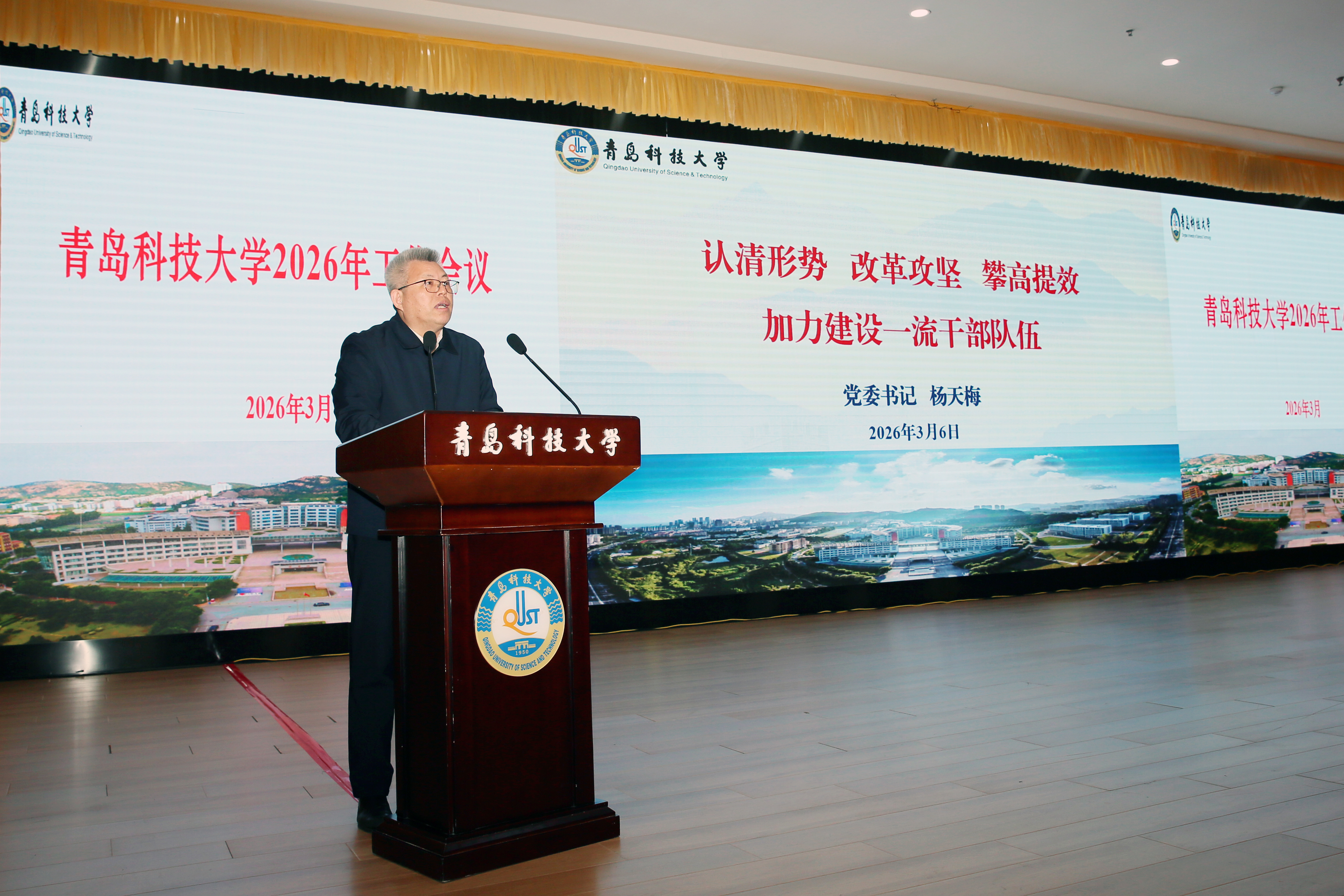 3月5日至6日,青岛科技大学2026年工作会议在崂山校区召开。学校党政领导班子全体成员出席会议。