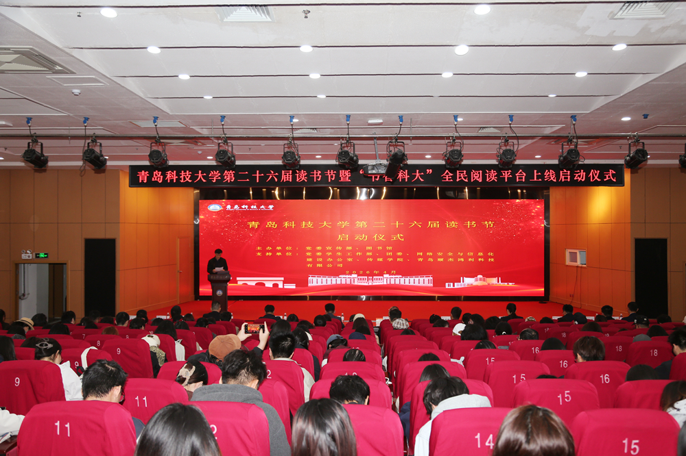 4月21日下午,青岛科技大学第二十六届读书节暨“书香科大”全民阅读平台上线启动仪式在崂山校区第三报告厅举行。学校党委常委、副校长丁林出席并讲话。党委常委、宣传部部长张洪坤,青岛颐杰鸿利科技有限公司党委书记、董事长张继收出席仪式。
