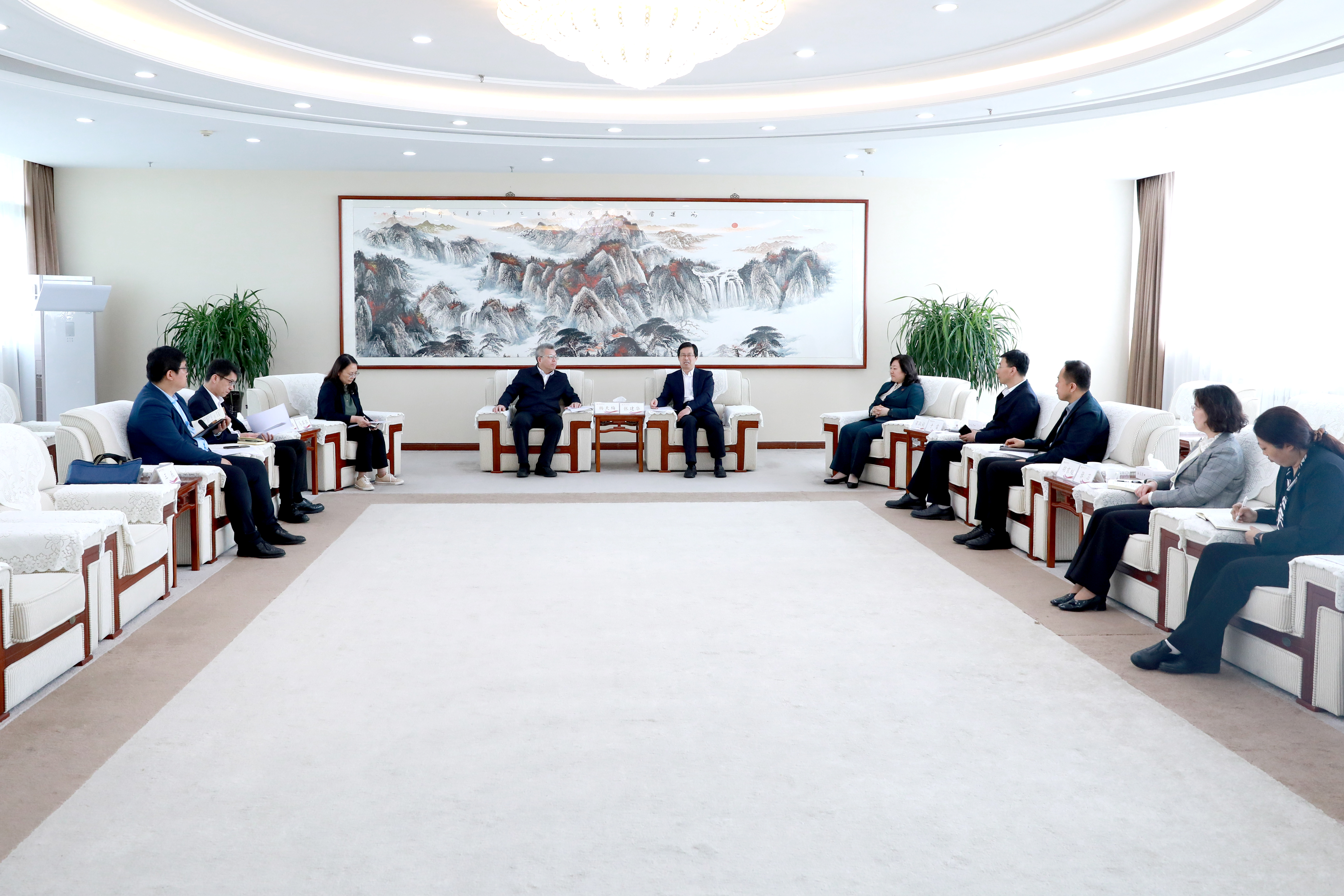 在潍坊市调研时,潍坊市委书记刘运会见了杨天梅一行,潍坊市委常委、宣传部部长杨建华出席座谈会。杨天梅对潍坊市长期以来关心、支持学校事业发展表示衷心感谢,并介绍了学校办学特色和高密校区建设发展情况。杨建华高度赞扬了学校高质量发展取得的成效,充分肯定了高密校区为潍坊市经济社会发展作出的积极贡献。双方围绕深化校地融合发展进行了深入交流,并在多个方面达成合作共识。潍坊市将积极整合资源,全力支持高密校区扩容建设。同时,双方将共建实体化运行的校地融合创新发展中心,聚焦潍坊市产业发展需求,选派优秀干部、教师挂职担任科技副职,依托学校全国重点实验室、国家工程研究中心等高能级平台,组织专家团队开展研发和技术攻关,推动科技创新与产业创新深度融合,促进更多成果在潍坊转化落地,更好服务潍坊市经济社会发展。
