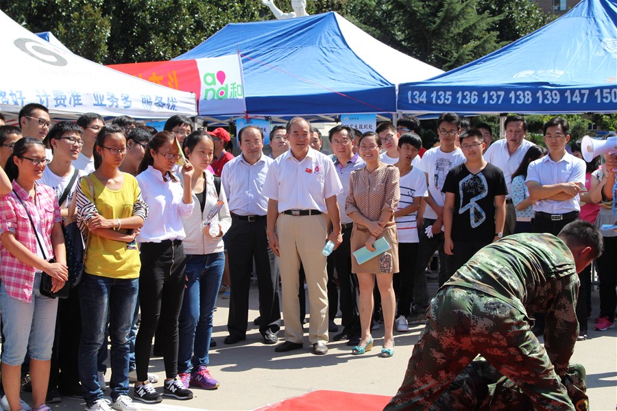 报到当天,学院领导班子在材料学院楼前迎接广大新生并走进宿舍看望新生及家长。2014级班主任在“班主任工作站”第一线为新生及家长提供专业知识咨询,并将自己班级的学生送进宿舍。