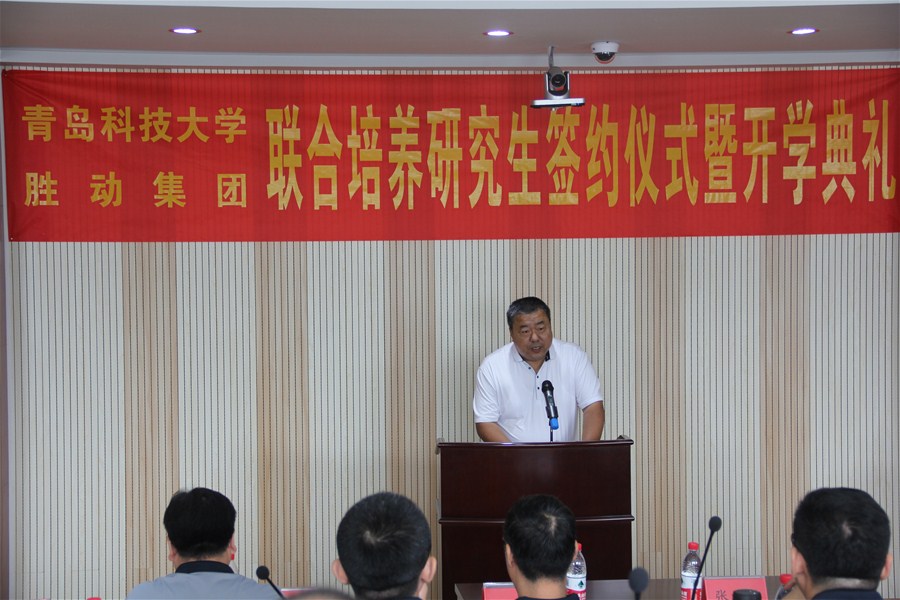 9月18日上午,青岛科技大学-胜利油田胜利动力机械集团有限公司(以下简称胜动集团)联合培养研究生签约仪式暨开学典礼在经管楼511隆重举行。青岛科技大学副校长张元利,胜动集团总经理王志春,研究生处处长吴俊飞,经管学院、MBA教育中心与胜动集团相关负责人同全体学员一起参加了典礼。典礼由经管学院党总支书记丛海燕主持。
