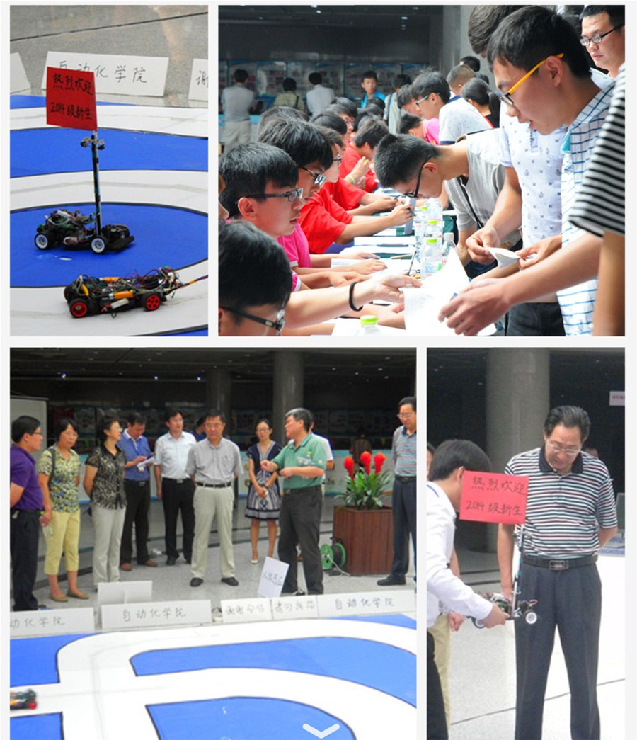 为了帮助2014级新同学更适应大学生活,认知专业,规划职业,实现梦想,学院量身为每一位同学制定了私人定制了“智能导航”的筑力计划,暨为每一位同学配备了5vs1的“私人”服务:“朋辈定位、学业引领、生涯模拟、实践驱动、就业巡航”。高年级优秀学生,以“过来人”的身份对新生的学习生活进行传帮带;业务课老师进行专业和学业教育;国家职业指导师,心理咨询师进行职业生涯规划和心理辅导,为四年学习、生活保驾护航;杰出的校友,为学生创造更多地实践机会,及早融入社会;教授博导为其担任班主任,指导大学四年的学业发展和专业提升。学院结合自己的专业特色,高年级学生学以致用,为新同学特别制作了几辆智能车,包含着三层寓意:第一,智能车提前设置了程序,智能车在赛道上跑起来的时候,也寓意着希望2014新同学在科技大学跑起来,特别是在学院精心设计的“智能导航”计划保驾护航下,在新的起点能够健康快乐的成长;第二,根据以往对报考自动化专业的学生的调研,每一个来到自动化学院的同学孩时都有一个自己掌控遥控汽车的梦想,当他们看到这个智能汽车不需要遥控就可以奔跑的时候,让自己找回最初的梦想,在自动化和科大圆梦;第三,自动化学院有着良好的科技创新平台,大学生在自动化学院经过4年的学习,不仅掌握了专业知识,还能将知识转化为生产力,以此也希望新同学能够努力学好专业知识,早日制作自己的“智能车”。