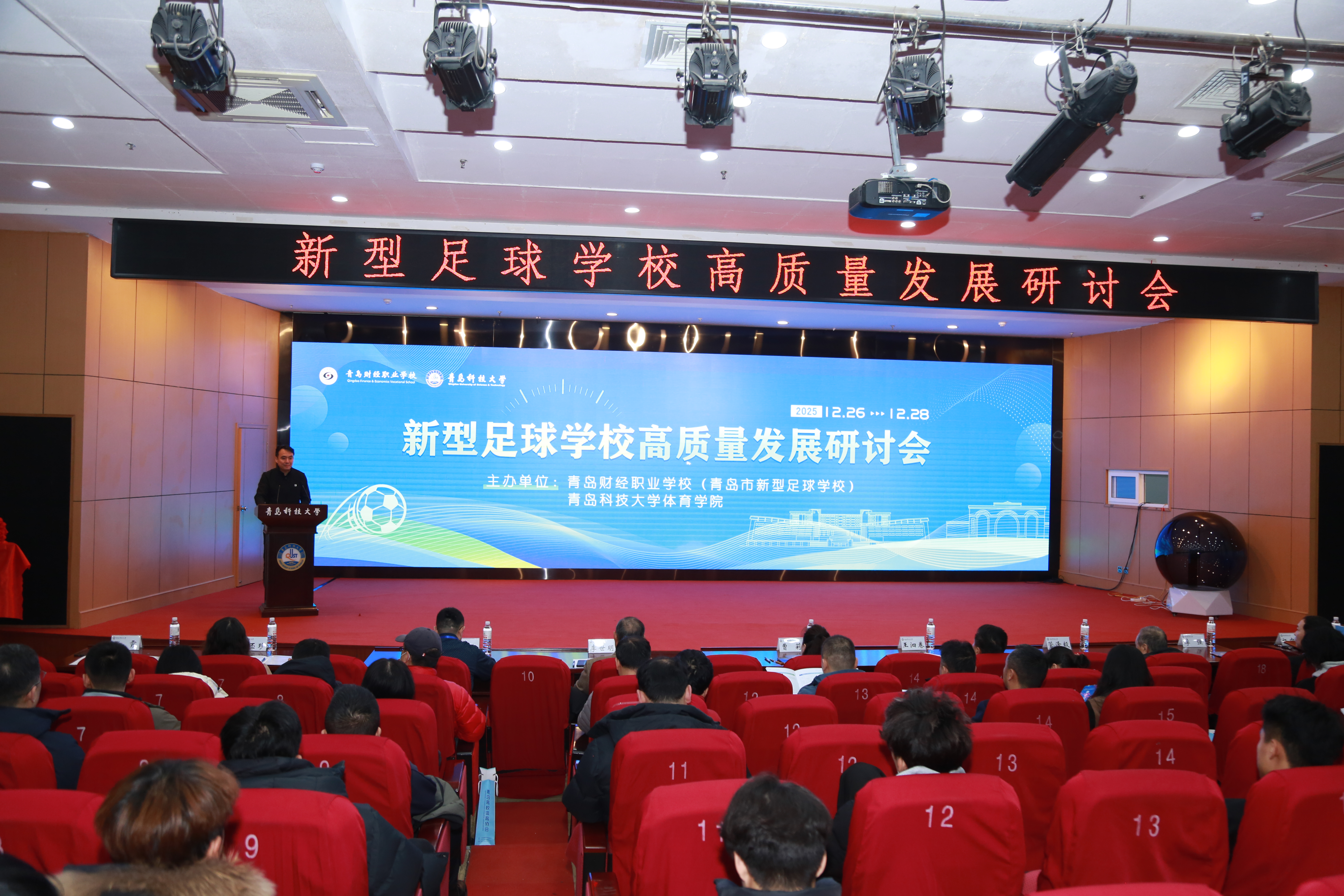 近日,由青岛财经职业学校(青岛市新型足球学校)、青岛科技大学体育学院主办,青岛市教育局、青岛校园足球协会、青岛高校体协指导的新型足球学校高质量发展研讨会在崂山校区第三报告厅召开。青岛市教育局体卫艺处二级调研员王泗卷,青岛校园足球协会会长管泽毅,青岛财经职业学校副校长(主持工作)刘杰,青岛科技大学体育学院党委书记杨中华及企业、师生代表近百人参加了本次研讨会。会议由体育学院院长张霄主持。