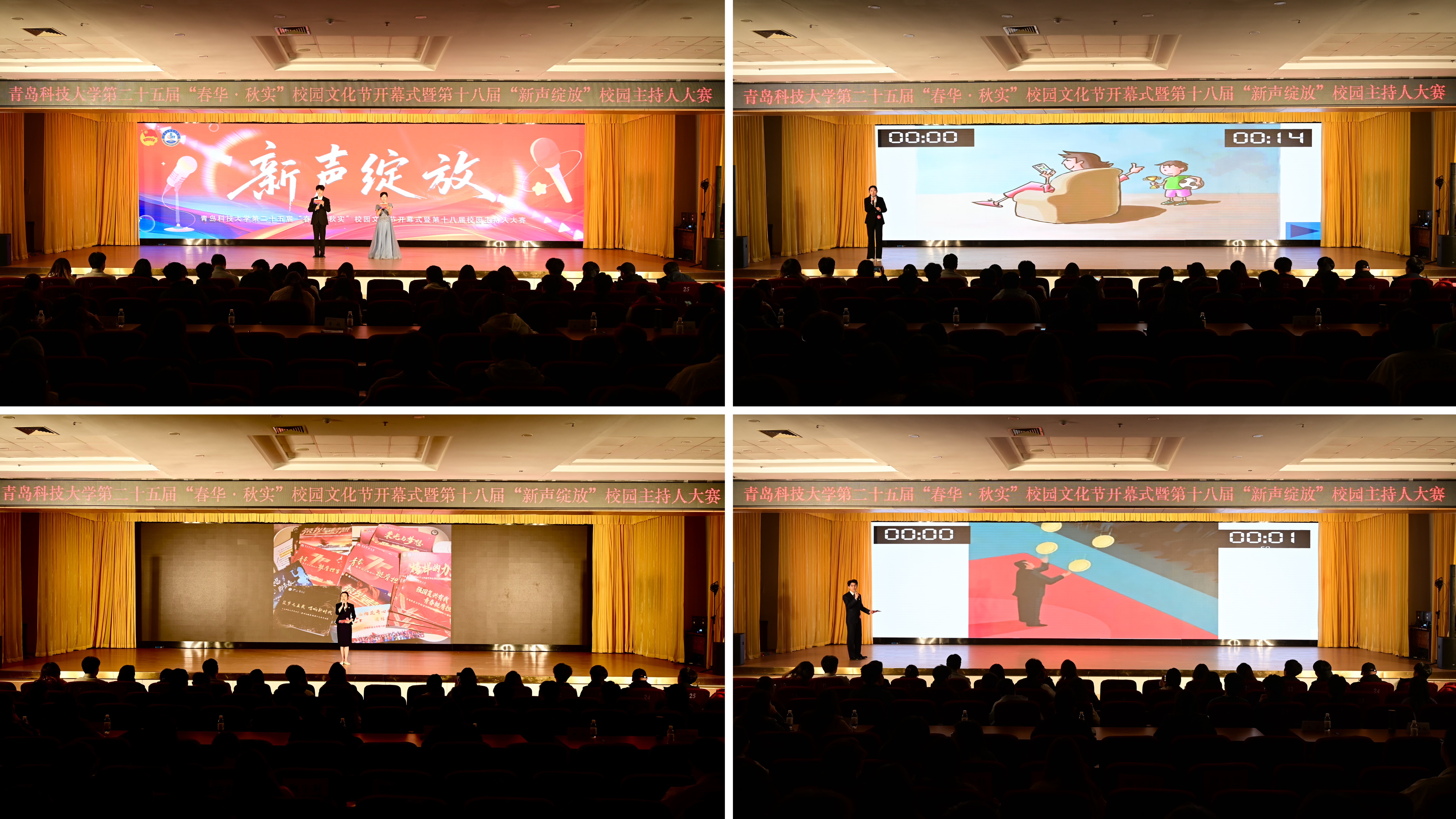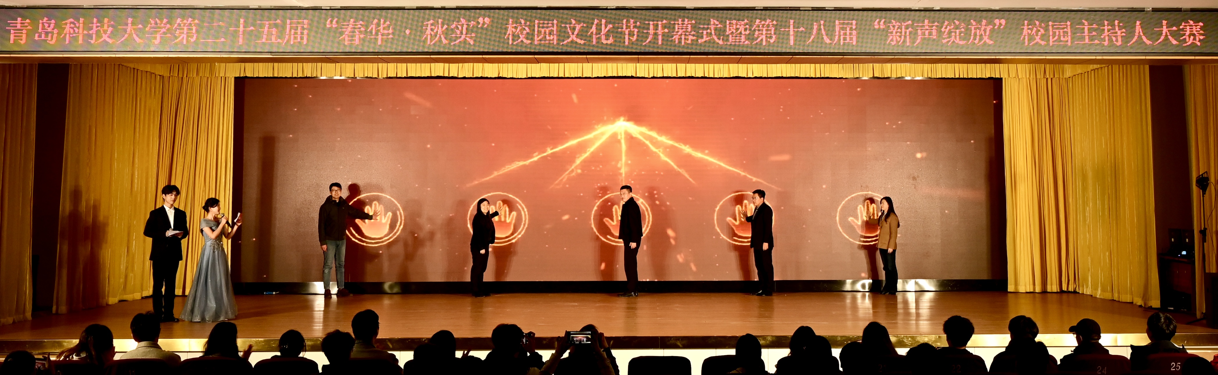 4月7日,学校第二十五届“春华·秋实”校园文化节开幕式暨第十八届“新声绽放”主持人大赛决赛在崂山校区第二报告厅举办。学校相关职能部门、校团委相关负责人、各学院团组织负责人及青年师生代表800余人现场参加。