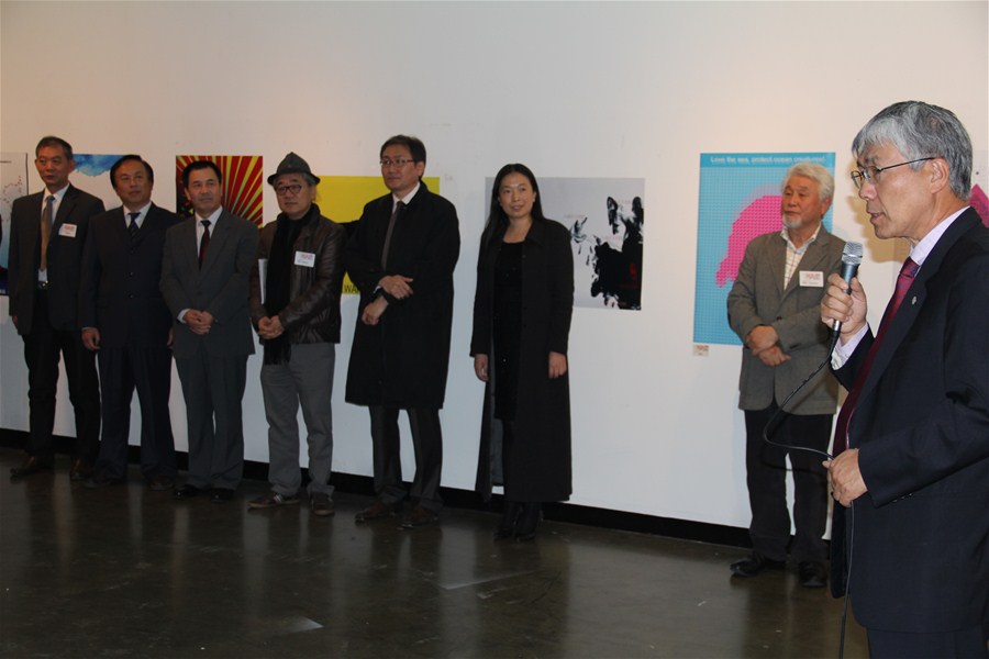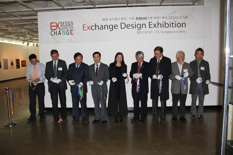 开幕式上,韩国成均馆大学副校长宋寅万先生致开幕词,孙佩珊致答谢词。成均馆大学艺术学院院长Lee kyounghyeon ,白金男先生、韩国成均馆大学教授郑申恭先生、青岛科技大学艺术学院副院长林建业、副院长马延岳等为开幕式共同剪彩,中韩师生100余人参加了本次设计作品交流展。