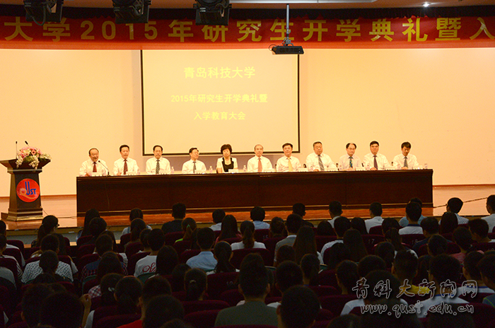 9月6日上午,青岛科技大学2015级研究生开学典礼暨入学教育大会在崂山校区第二报告厅隆重举行。校领导高青、马连湘、王瑞芳、张元利、李庆领、刘光烨、韦殿华等出席典礼并在主席台就座。党委(校长)办公室、研究生工作处、各学院负责人、导师代表、2015级全体博士、硕士研究生以及校研究生会主席参加了大会。典礼由党委(校长)办公室主任李勇主持。